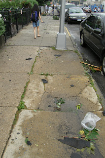 After falling asleep at 3 a.m. this morning, I was abruptly awoken by the biggest thunder storm I've seen this year. Hot and sticky, I couldn't fall back asleep at 6 in the morning, so I popped open my t.v. to listen in on the storm report. Around 6:40 a.m. there was a tornado warning over Brooklyn. I watched the circle move over the screen indicating the tornado in the atmosphere. right when it got over my part of Brooklyn, it got really dark and quiet for a moment. OH SHIT! The trees bent sideways outside and I ran to get everyone into the basement. When it blew over, this was the scene outside: